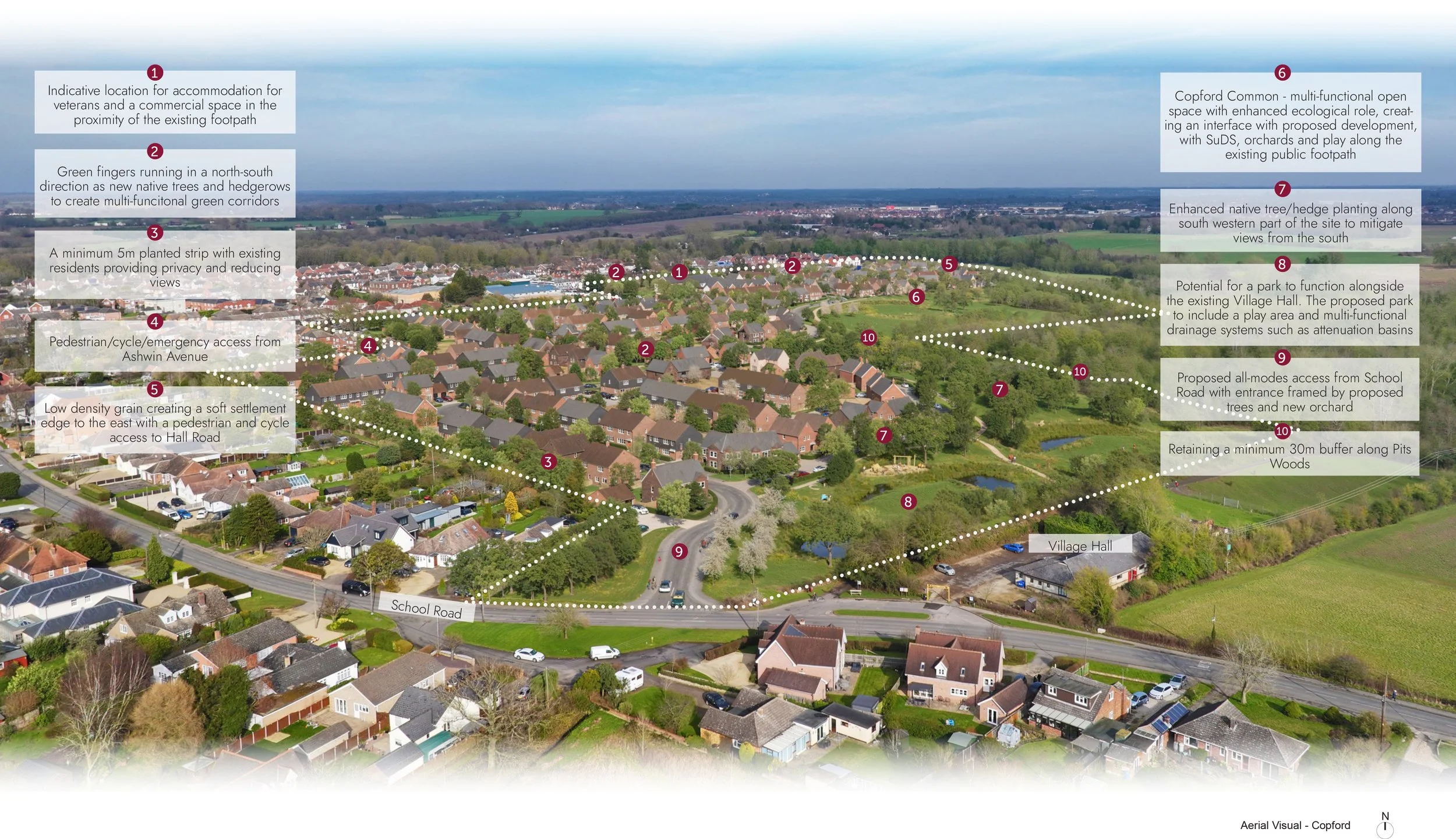 Becoming part of the wider village, by integrating the proposed neighbourhood with existing facilities such as the nearby Copford Village Hall;